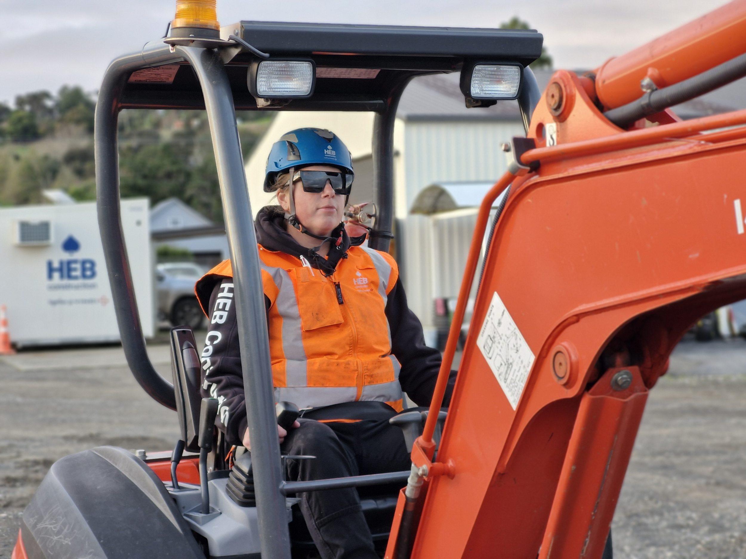 Kaitlyn operating an excavator